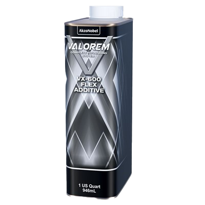 Vehicle parts made of deformable plastics require special flexible paints. The use of Flex Additive will improve the flexibility and chip resistance so that the paint system can tolerate normal bending and impacts of the plastic part without cracking or chipping.